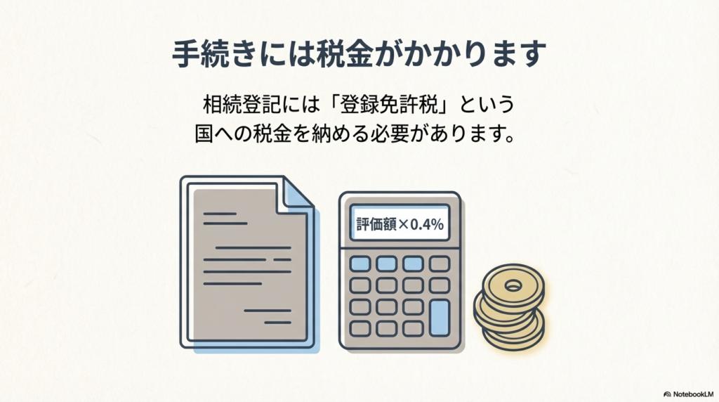 相続登記を法務局に申請する際には、「登録免許税」という国税を納める必要があります。これは登記手続きの手数料のようなものです。