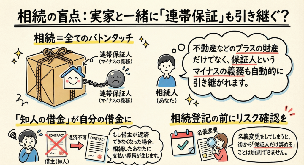実家を相続する代わりに、連帯保証人の地位も引き継ぎます。
