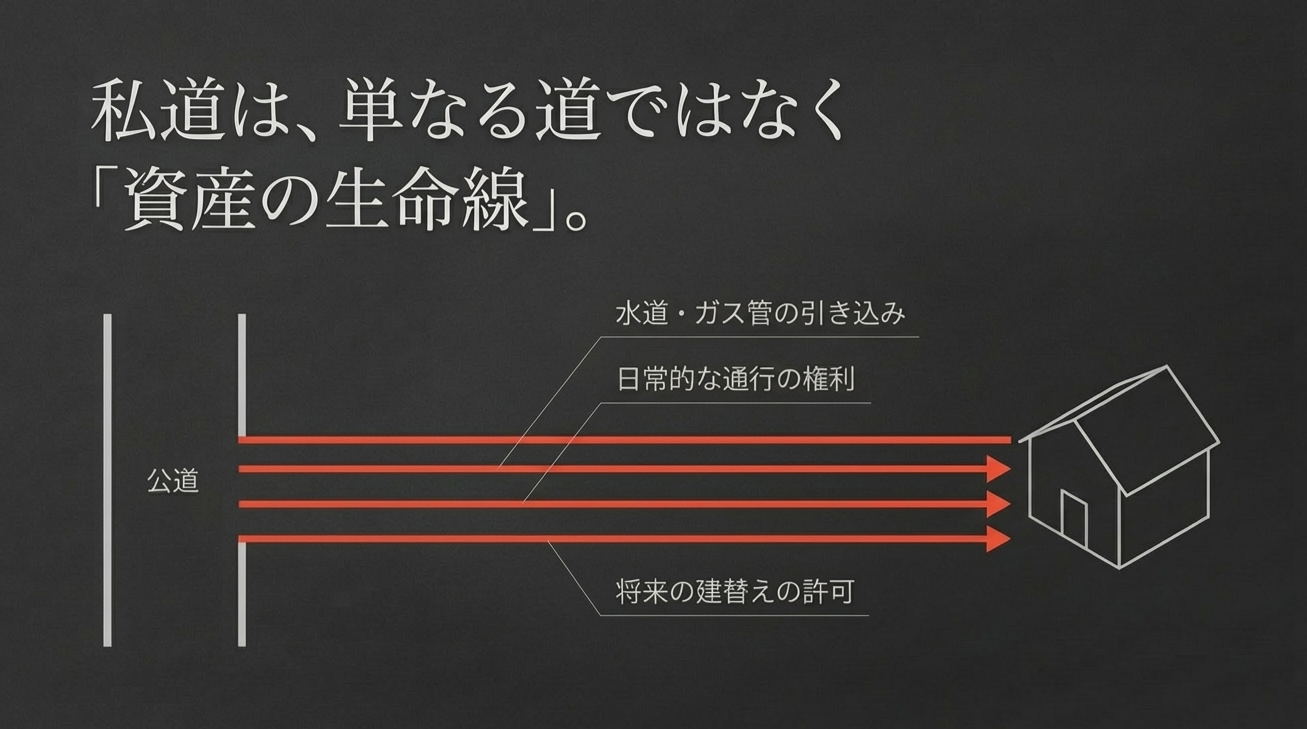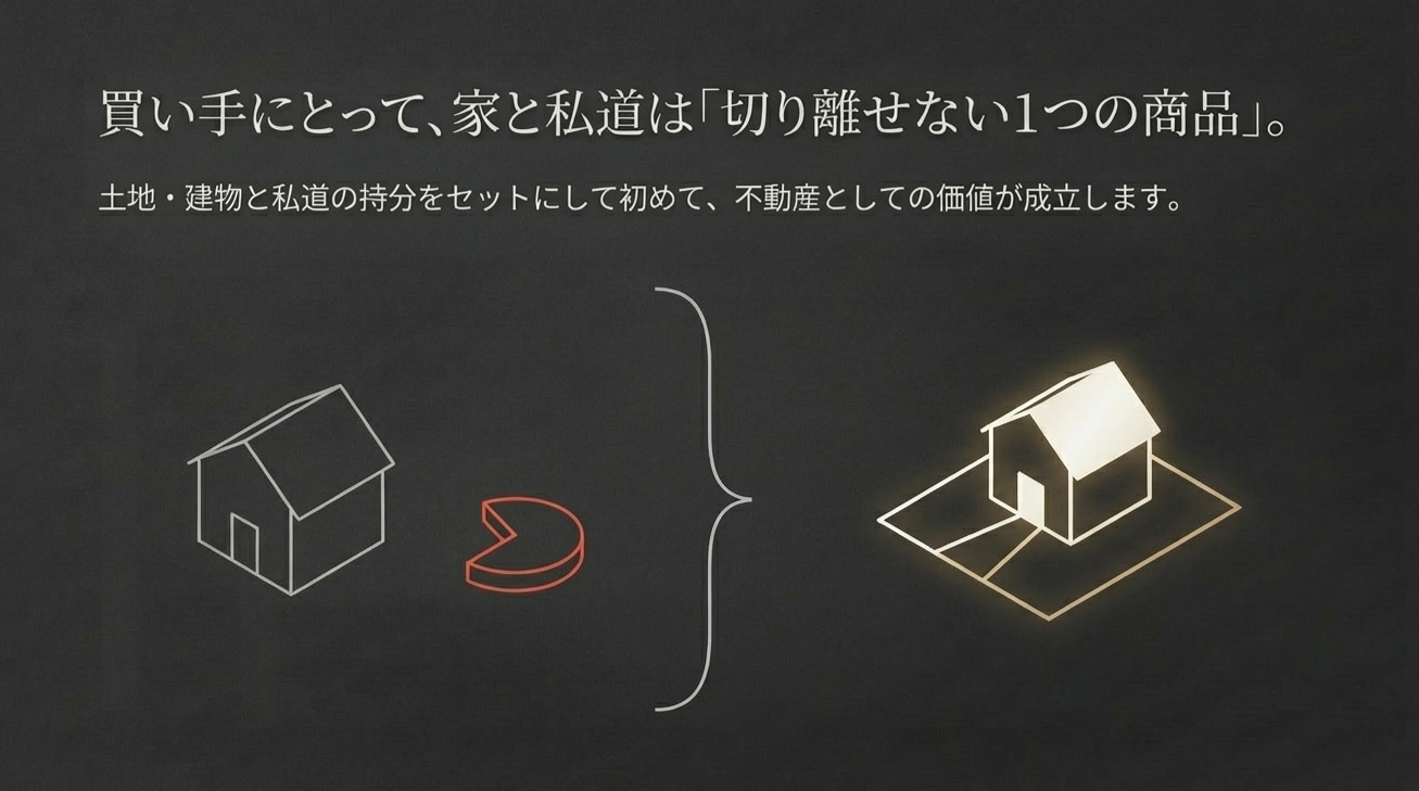 買主が家を建て替える際や、水道管・ガス管の引き込み工事をする際に、道路の所有者(持分を持っている人)であることが求められるケースが多いからです。そのため、不動産会社も「私道の持分も含めて、すべて買主に名義変更すること」を売却の必須条件とします。