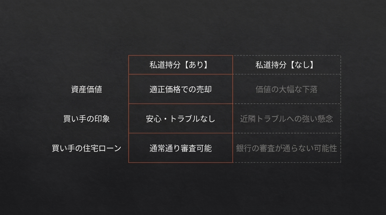 もし、私道の持分をそのままにして実家の土地・建物だけを買主に売却してしまった場合、後になって大きなトラブルになる可能性があります。